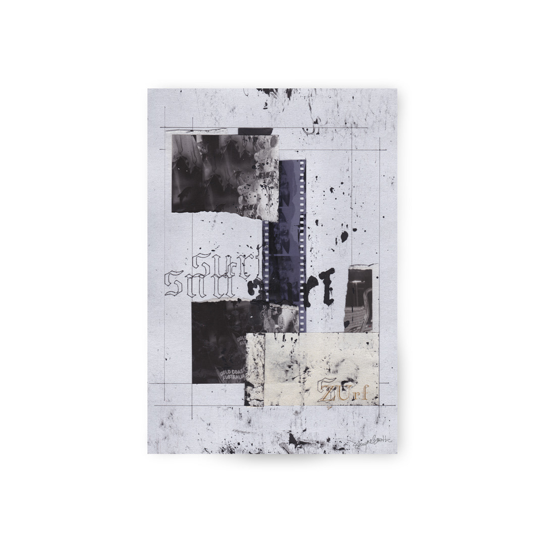 This series tells a story about growing up. The artworks have been created on card with stencils, ink and photos I had printed in the darkroom at high school, which gives a sense of nostalgia to each piece.